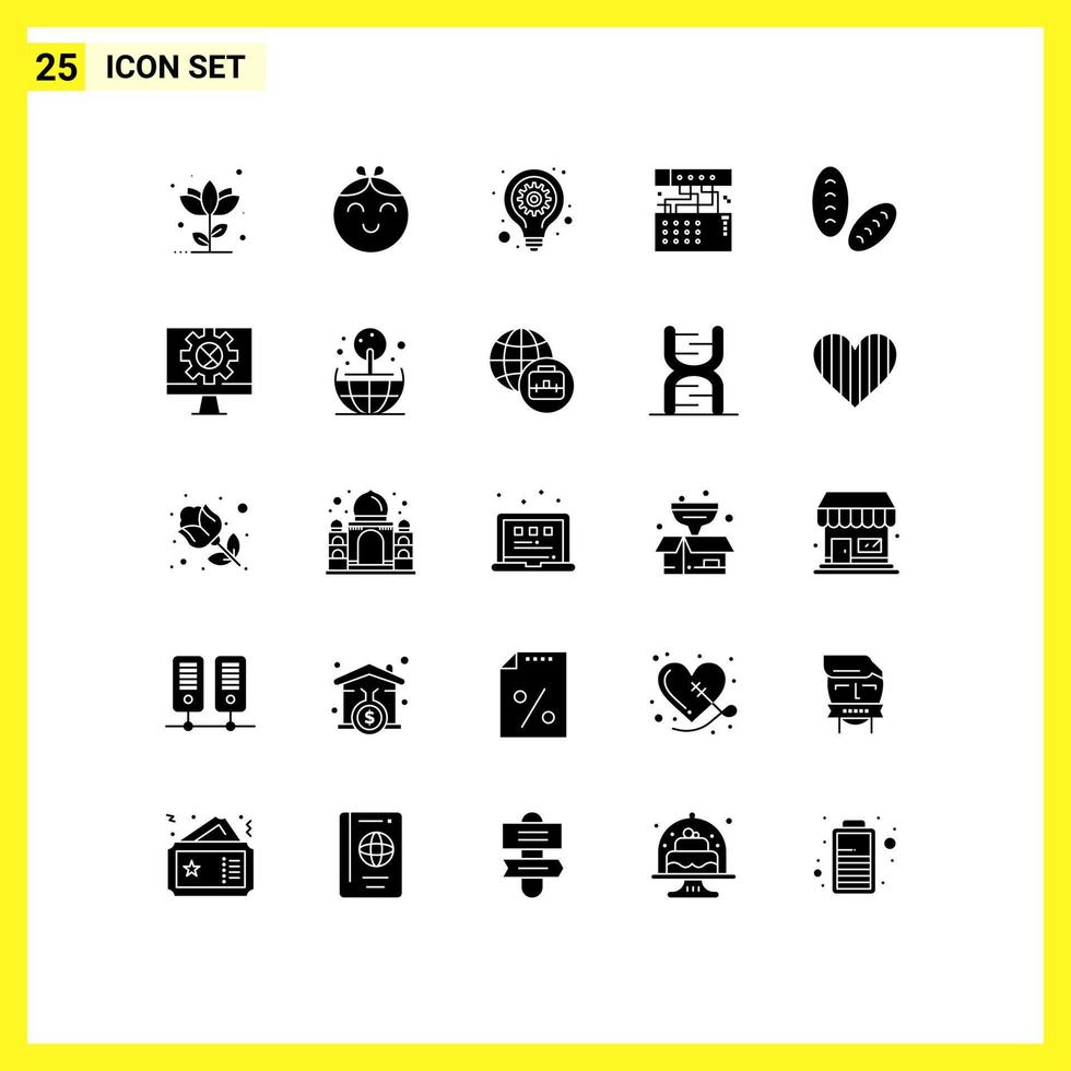 25 universal sólido glifos conjunto para web y móvil aplicaciones junquillo módulo bulbo dispositivo término análogo editable vector diseño elementos