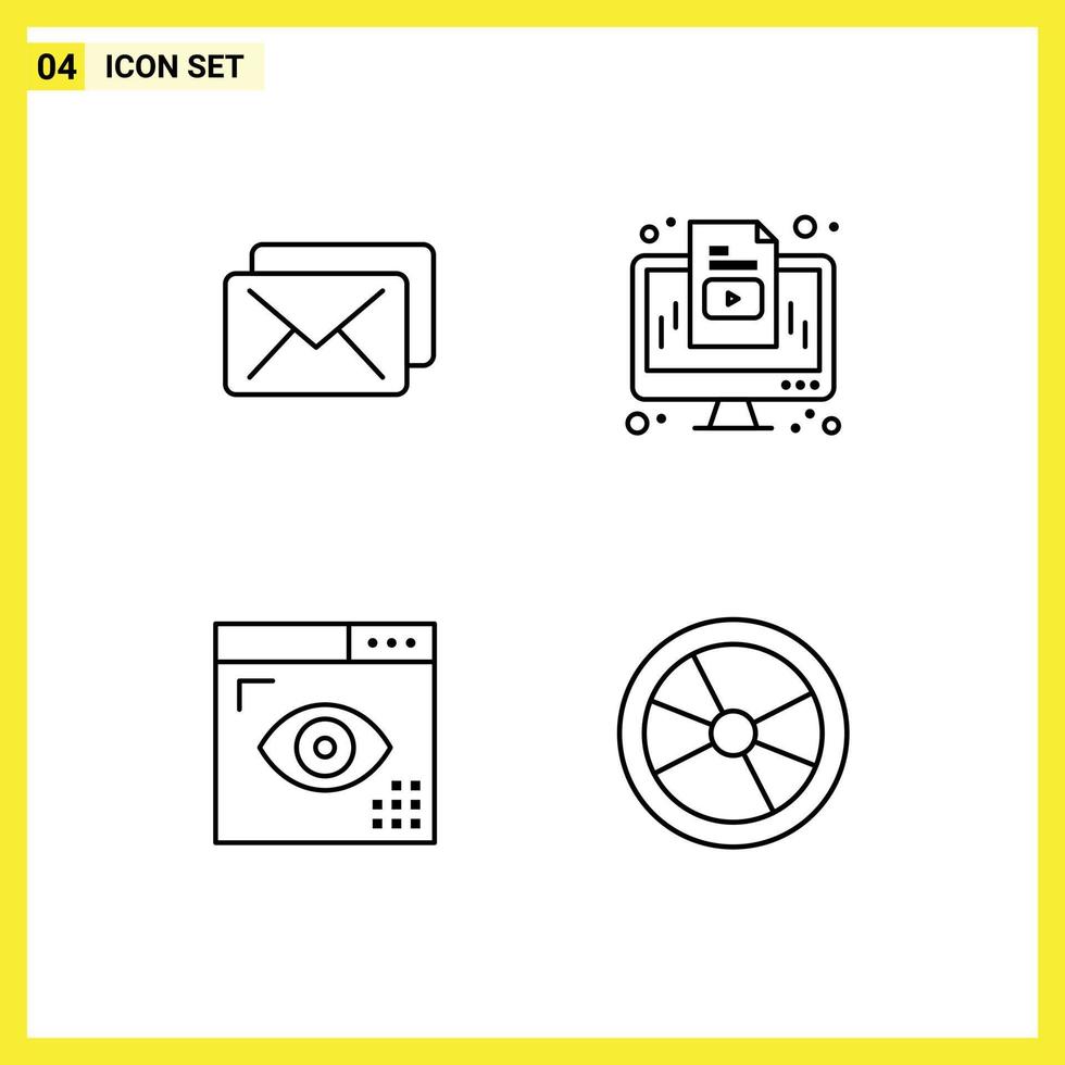 móvil interfaz línea conjunto de 4 4 pictogramas de negocio desarrollo computadora monitor programación editable vector diseño elementos
