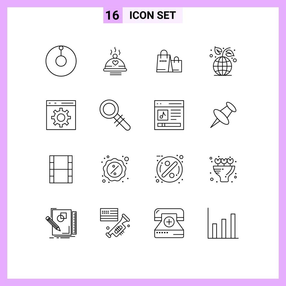 dieciséis contorno concepto para sitios web móvil y aplicaciones desarrollo codificación bolso planta ecología editable vector diseño elementos