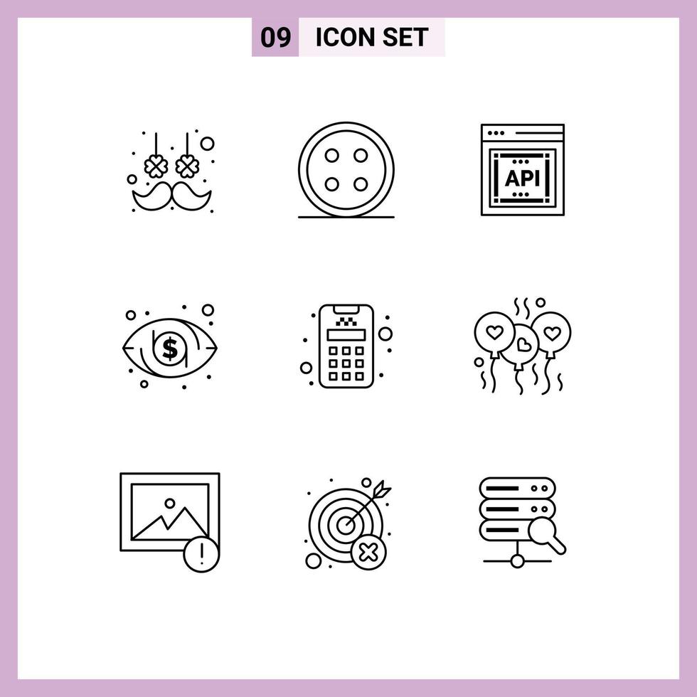 9 9 universal contornos conjunto para web y móvil aplicaciones crédito visión camisa botón ojo software editable vector diseño elementos