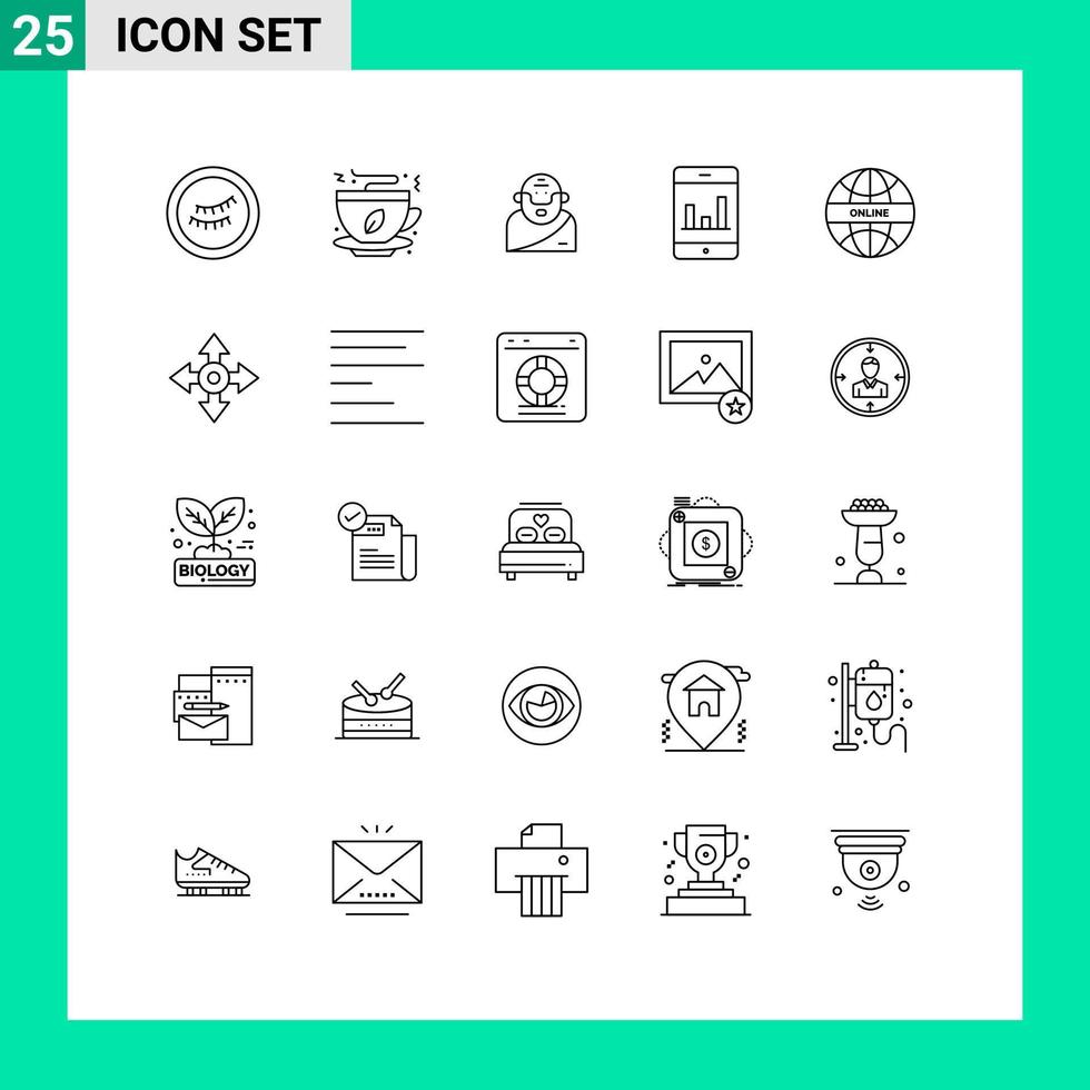 25 universal líneas conjunto para web y móvil aplicaciones flecha en línea mitología Internet teléfono inteligente editable vector diseño elementos