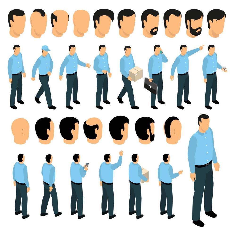 conjunto de hombre constructor de creación isométrica Vector Pro
