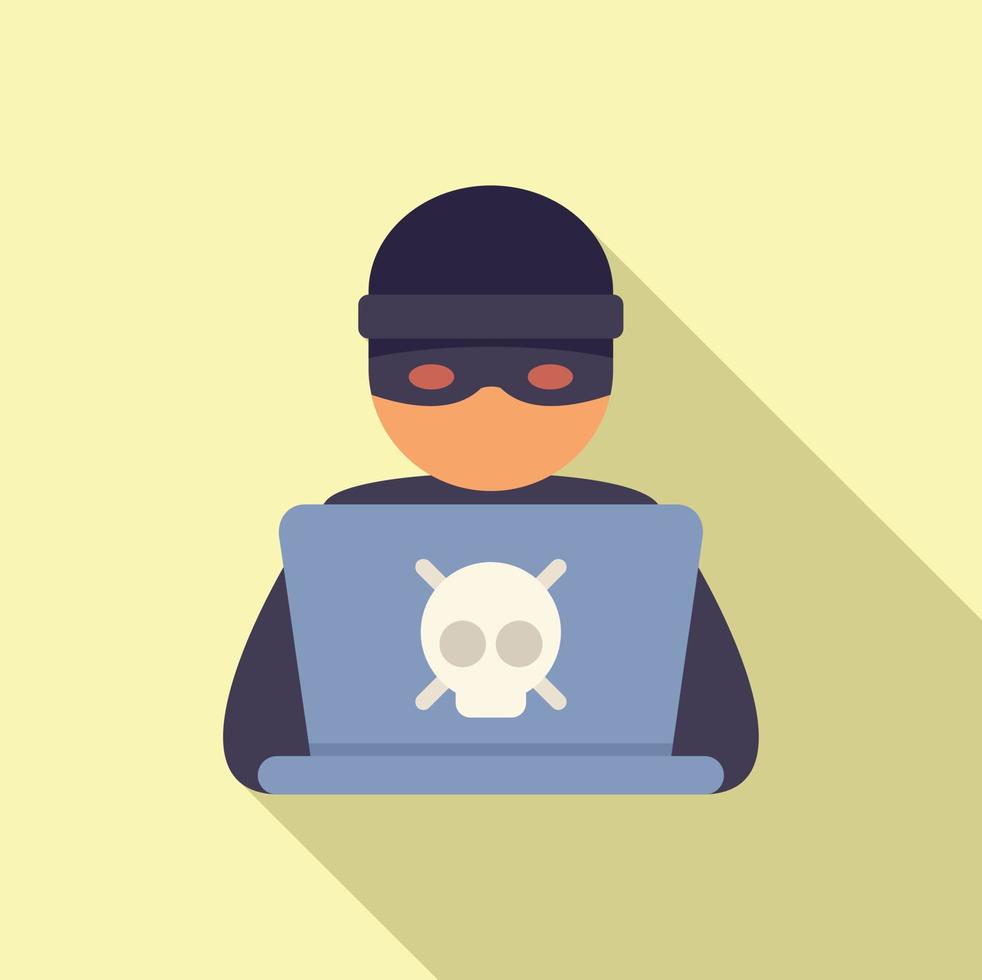 hacker trabajando icono plano vector. en línea reporte Vector Pro