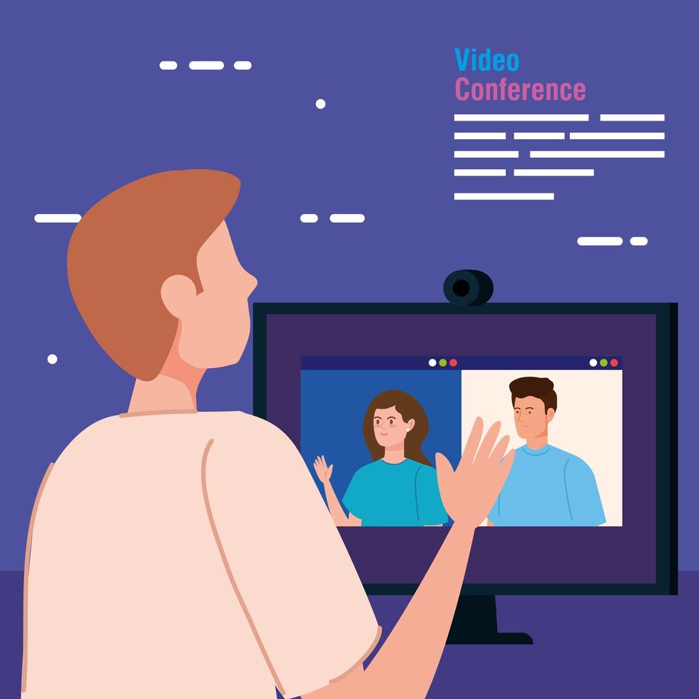 hombre en una videoconferencia a través de la computadora Vector Gratis