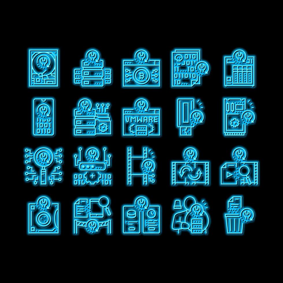 datos recuperación computadora Procesando neón resplandor icono ilustración Vector Pro