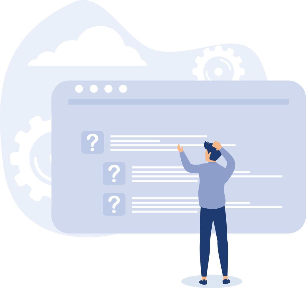 cliente ayuda Servicio concepto, Preguntas más frecuentes y sitio web apoyo equipo, chatbot cliente problema resolviendo,usuario experiencia, piso vector moderno ilustración Vector Pro
