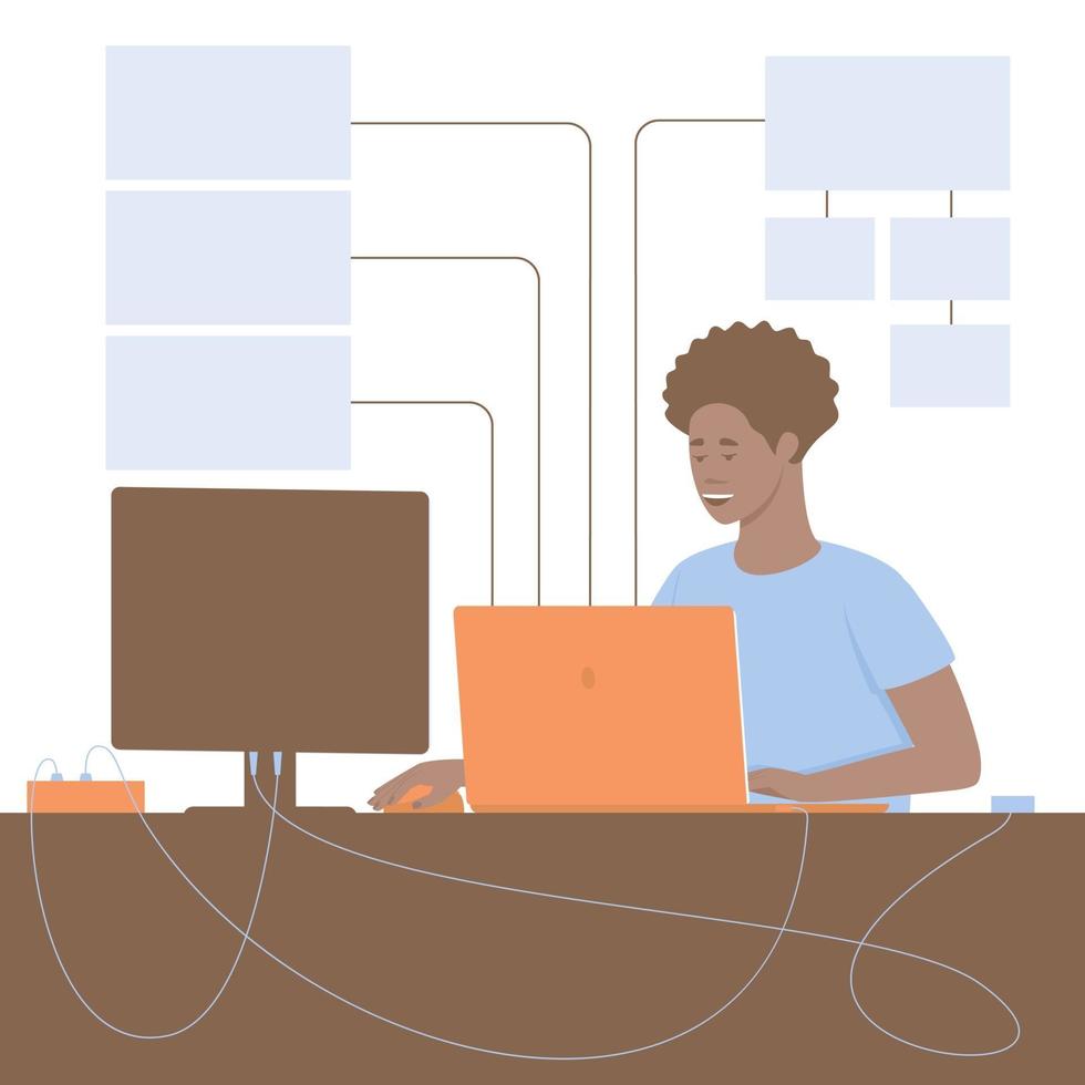 Programador web afroamericano que trabaja con Internet, escribe el componente de software de los sitios. Vector Pro