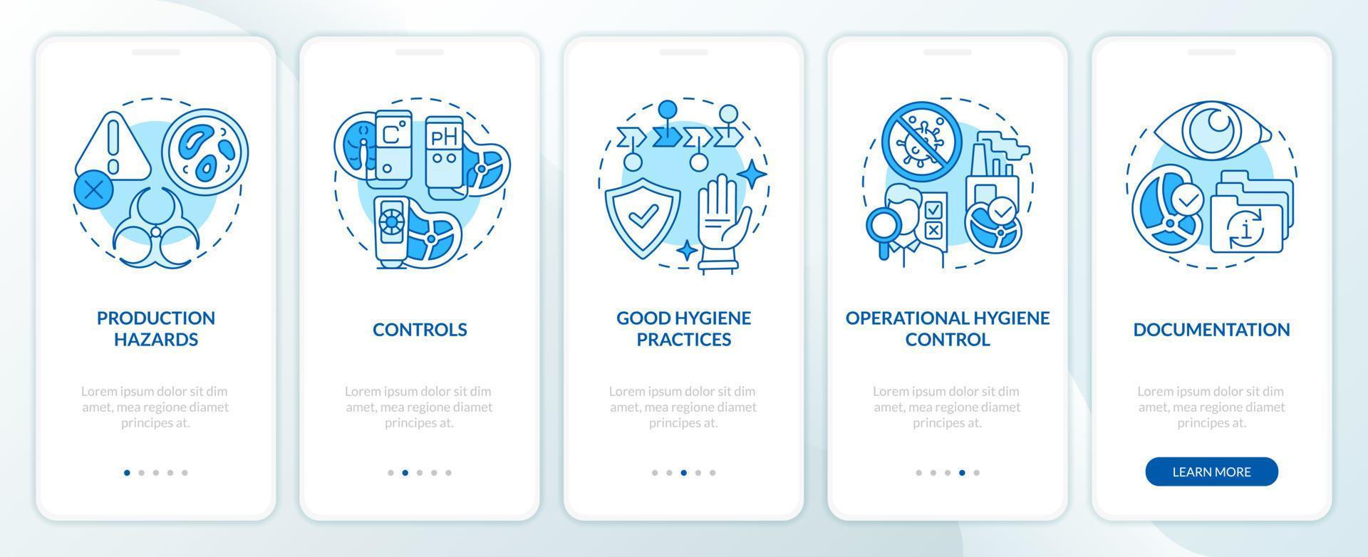 planificación Acercarse a haccp azul inducción móvil aplicación pantalla. la seguridad recorrido 5 5 pasos editable gráfico instrucciones con lineal conceptos. ui, ux, gui modelo Pro Vector y Pro SVG