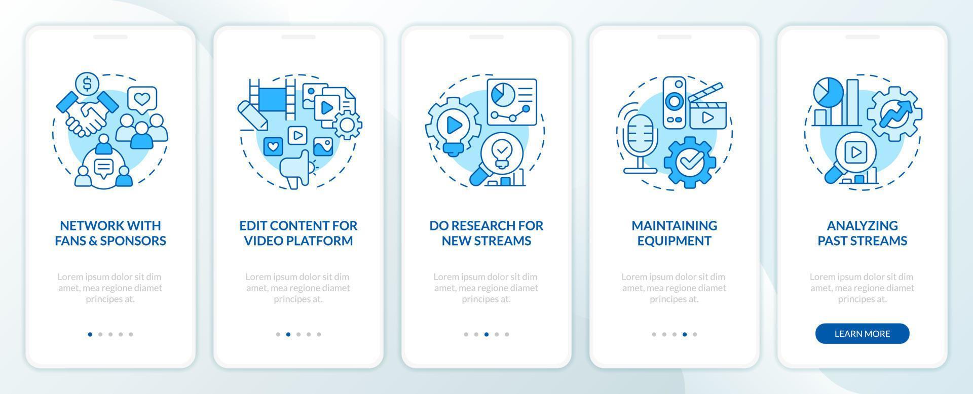 profesional en línea transmisión azul inducción móvil aplicación pantalla. recorrido 5 5 pasos editable gráfico instrucciones con lineal conceptos. ui, ux, gui modelo Pro Vector y Pro SVG