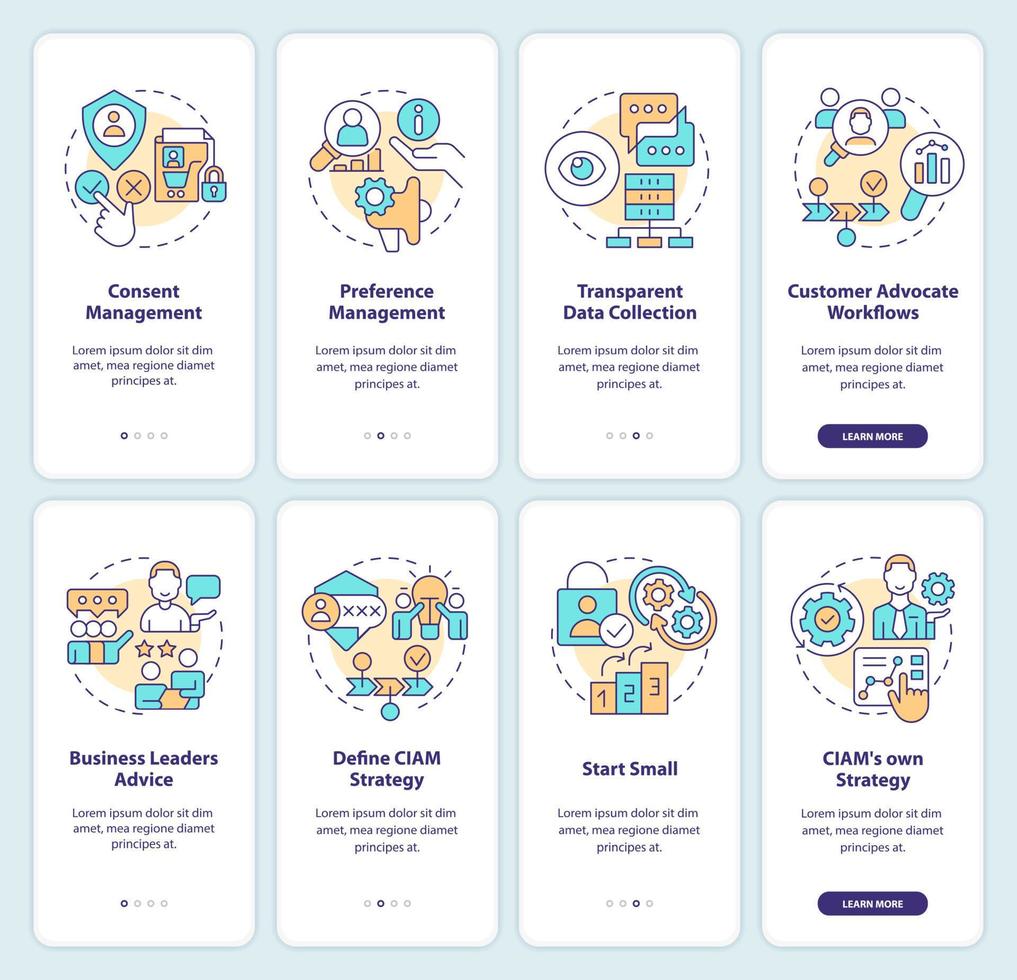 ciam inducción móvil aplicación pantalla colocar. cliente identidad administración recorrido 5 5 pasos editable gráfico instrucciones con lineal conceptos. ui, ux, gui modelo Vector Pro