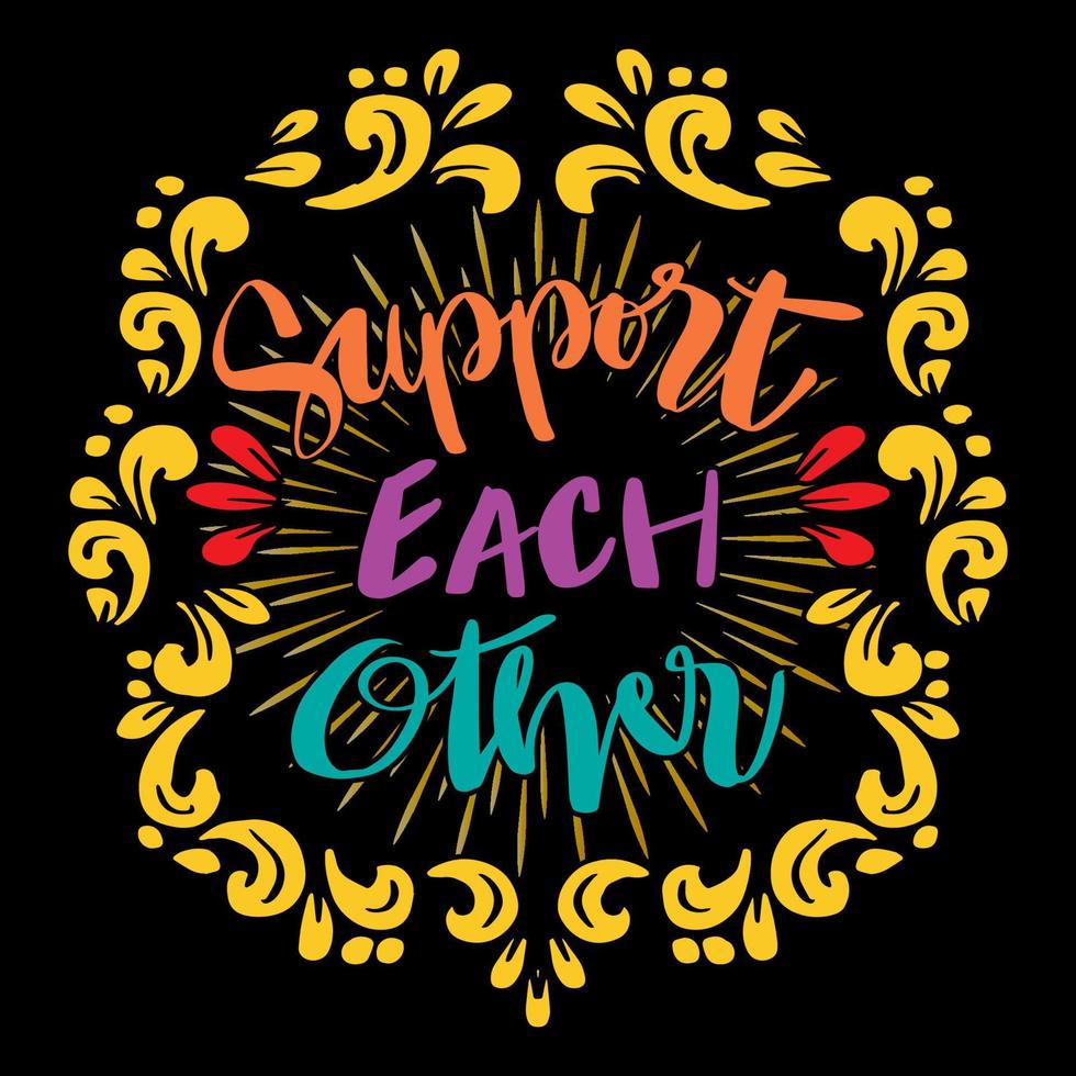 apoyo cada otro mano letras. póster citas. vector