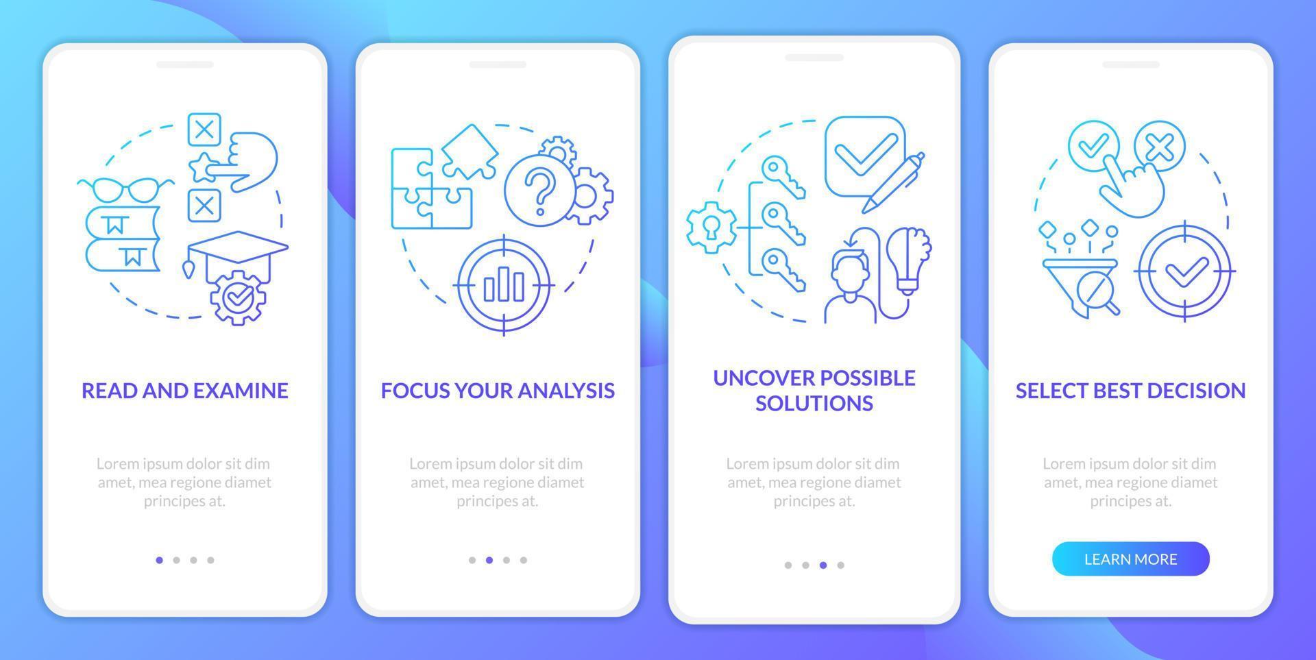 estructura de caso estudiar azul degradado inducción móvil aplicación pantalla. investigación recorrido 4 4 pasos gráfico instrucciones con lineal conceptos. ui, ux, gui modelo Vector Pro
