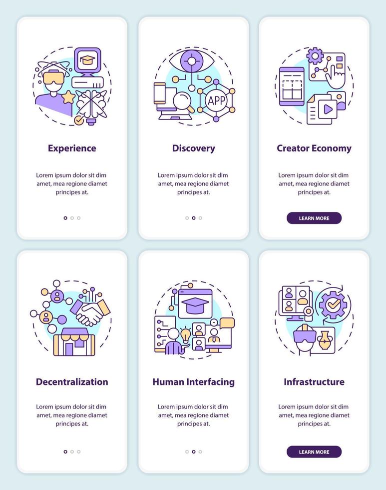 capas de metaverso tecnología inducción móvil aplicación pantallas colocar. recorrido 3 pasos editable gráfico instrucciones con lineal conceptos. ui, ux, gui modelo Vector Pro