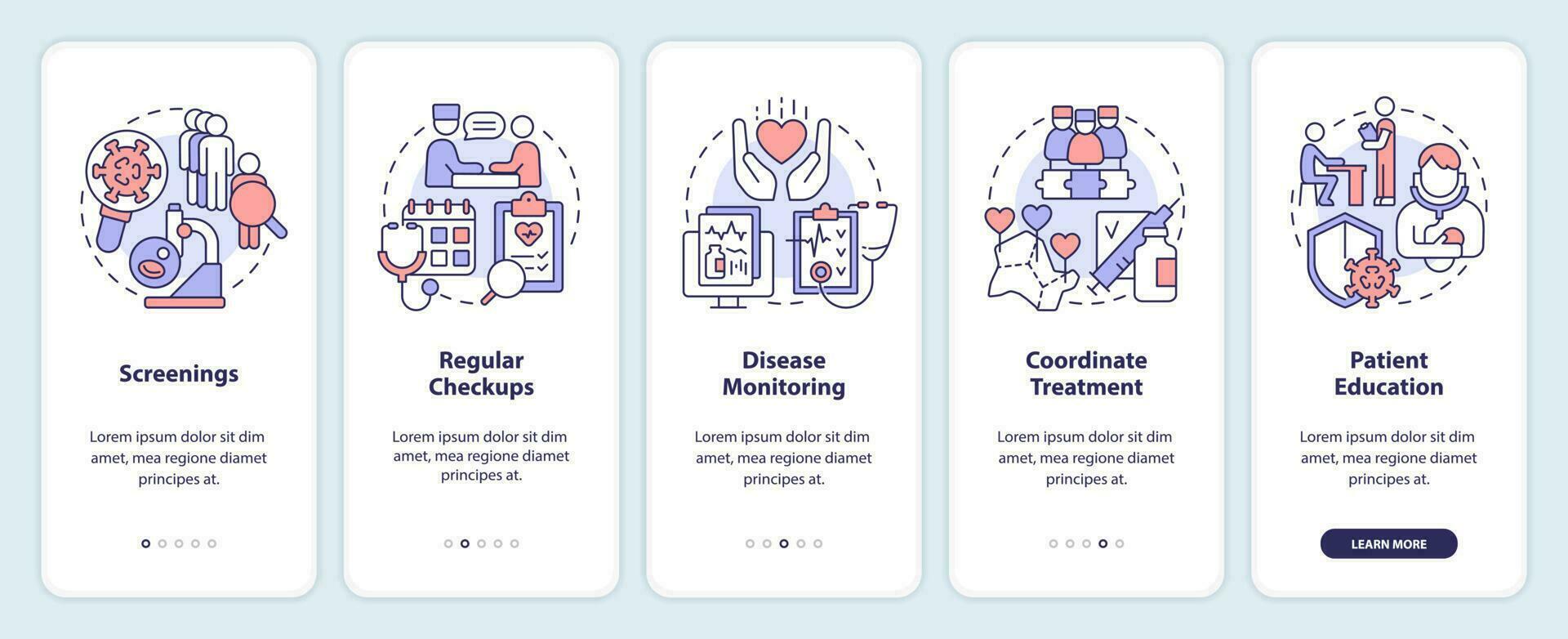 crónico enfermedad administración Acercarse inducción móvil aplicación pantalla. recorrido 5 5 pasos editable gráfico instrucciones con lineal conceptos. ui, ux, gui modelo Vector Pro