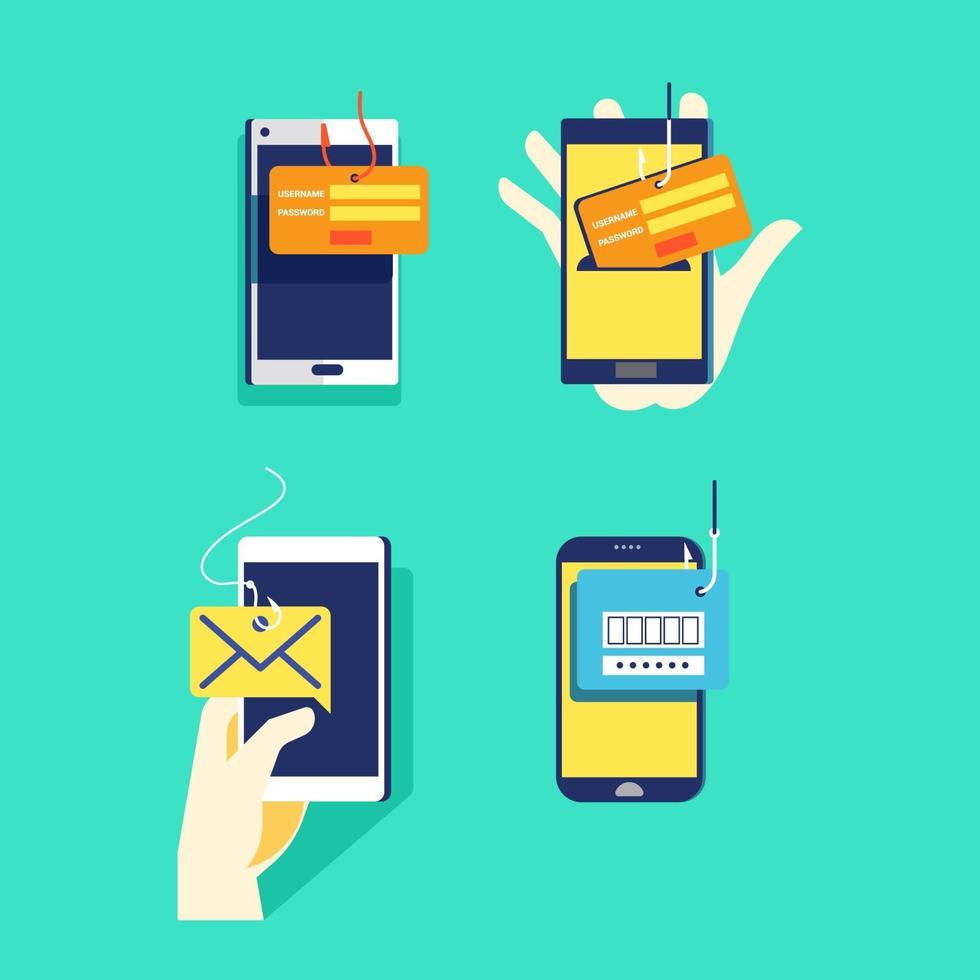 hacker phishing estafa ataque web seguridad vector concepto de phishing y fraude Vector Pro