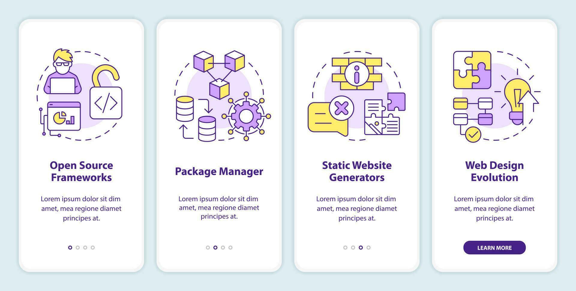 más grande digital desarrollo tendencias inducción móvil aplicación pantalla. recorrido 4 4 pasos editable gráfico instrucciones con lineal conceptos. ui, ux, gui modelo Vector Pro
