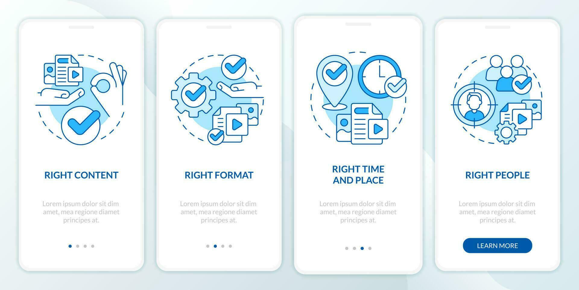 contenido principios azul inducción móvil aplicación pantalla. promoción recorrido 4 4 pasos editable gráfico instrucciones con lineal conceptos. ui, ux, gui modelo Pro Vector y Pro SVG