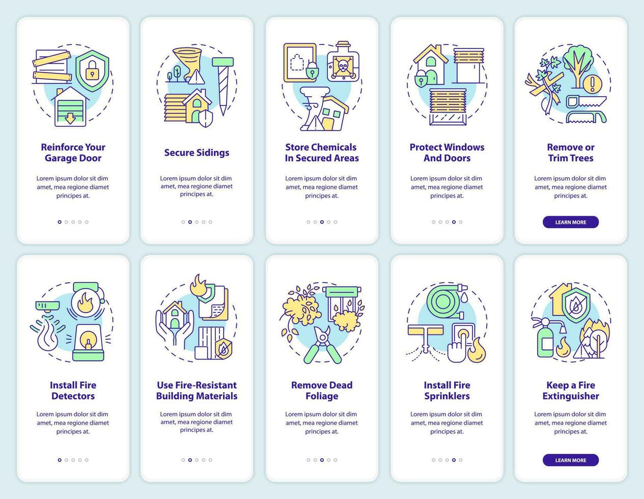 natural desastres preparación inducción móvil aplicación pantalla colocar. recorrido 5 5 pasos editable gráfico instrucciones con lineal conceptos. ui, ux, gui modelo Vector Pro