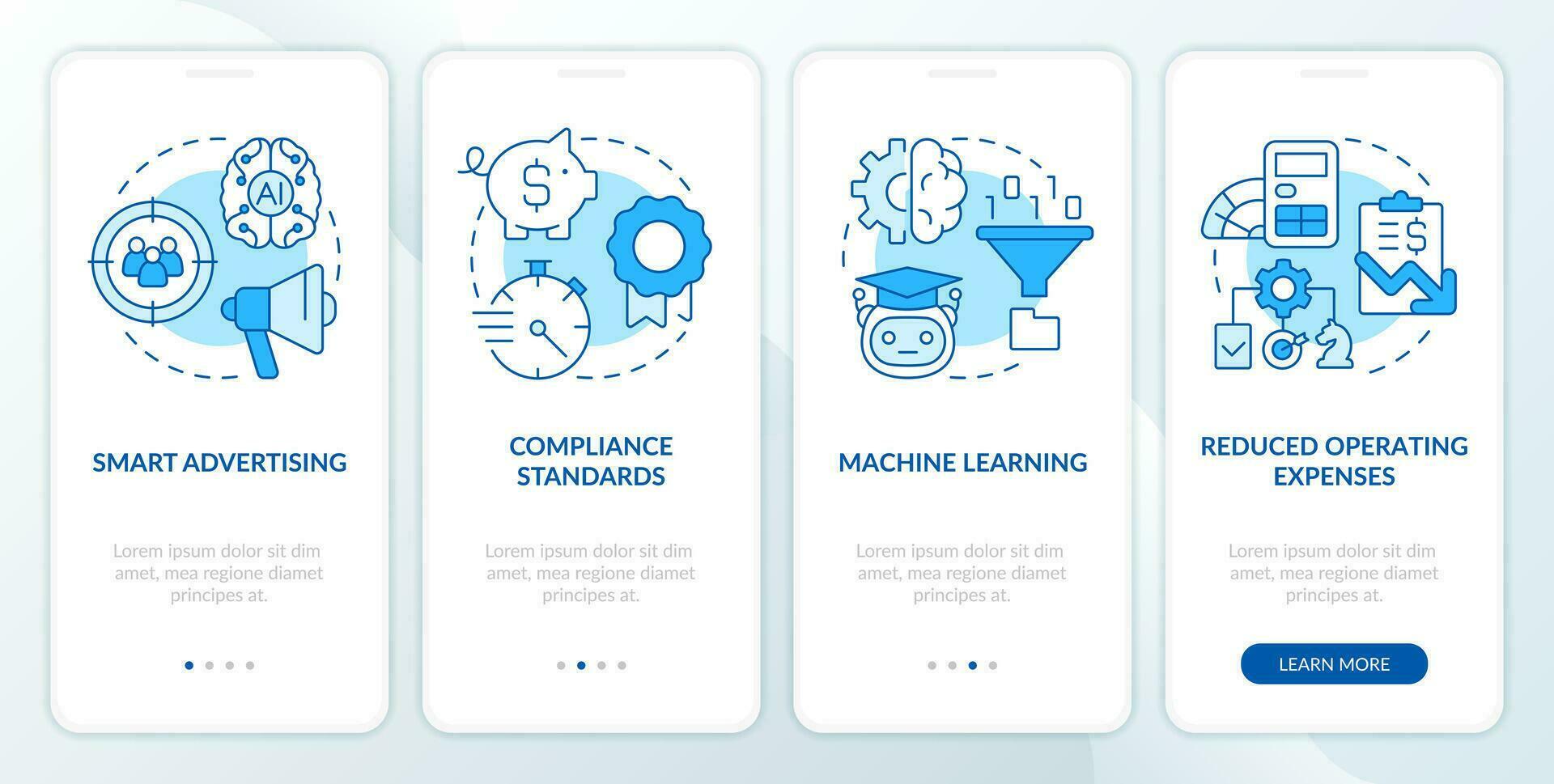pros de datos gobernancia sistemas azul inducción móvil aplicación pantalla. recorrido 4 4 pasos editable gráfico instrucciones con lineal conceptos. ui, ux, gui modelo Pro Vector y Pro SVG