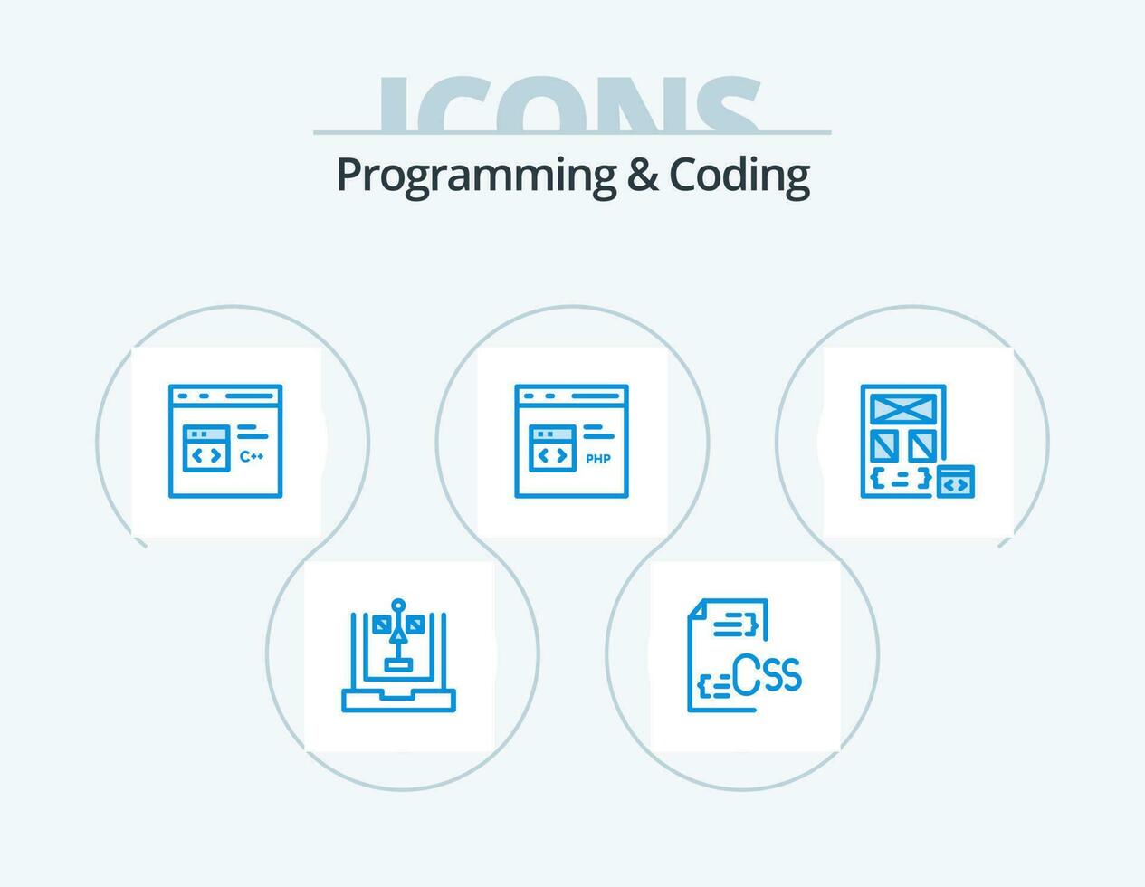 programación y codificación azul icono paquete 5 5 icono diseño. desarrollar. código. desarrollo. desarrollo. codificación vector