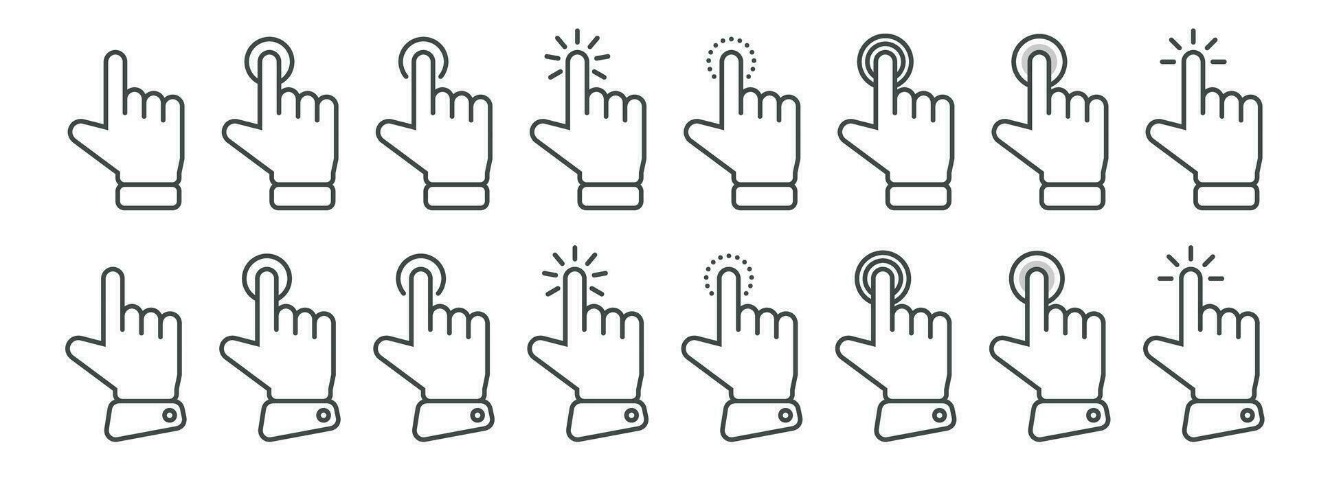 mano cursor icono en diferente gestos dedo ratón cursor. haciendo clic cursor vector ilustración