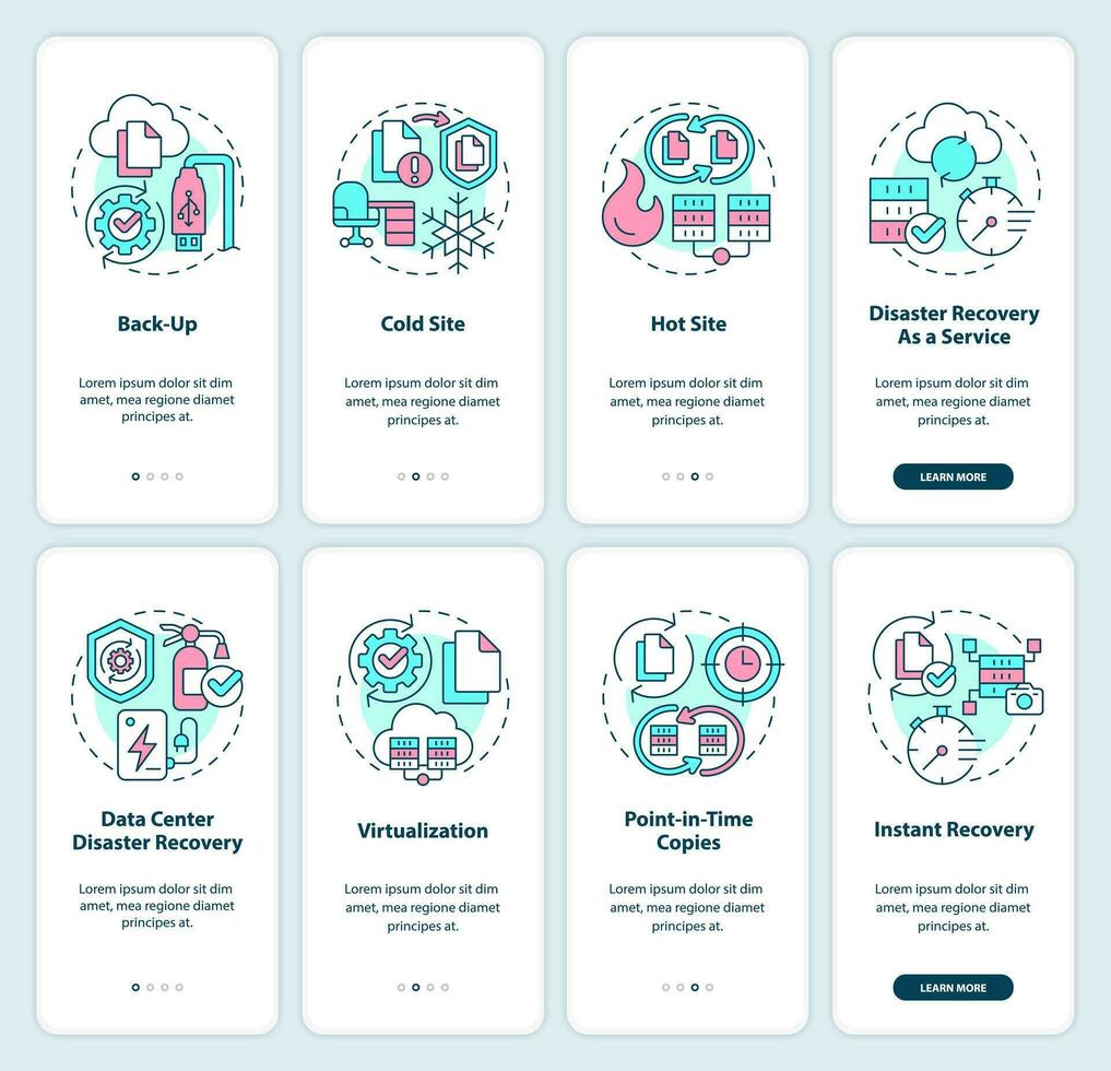 desastre recuperación inducción móvil aplicación pantallas colocar. recorrido 4 4 pasos editable gráfico instrucciones con lineal conceptos. ui, ux, gui plantilla Vector Pro