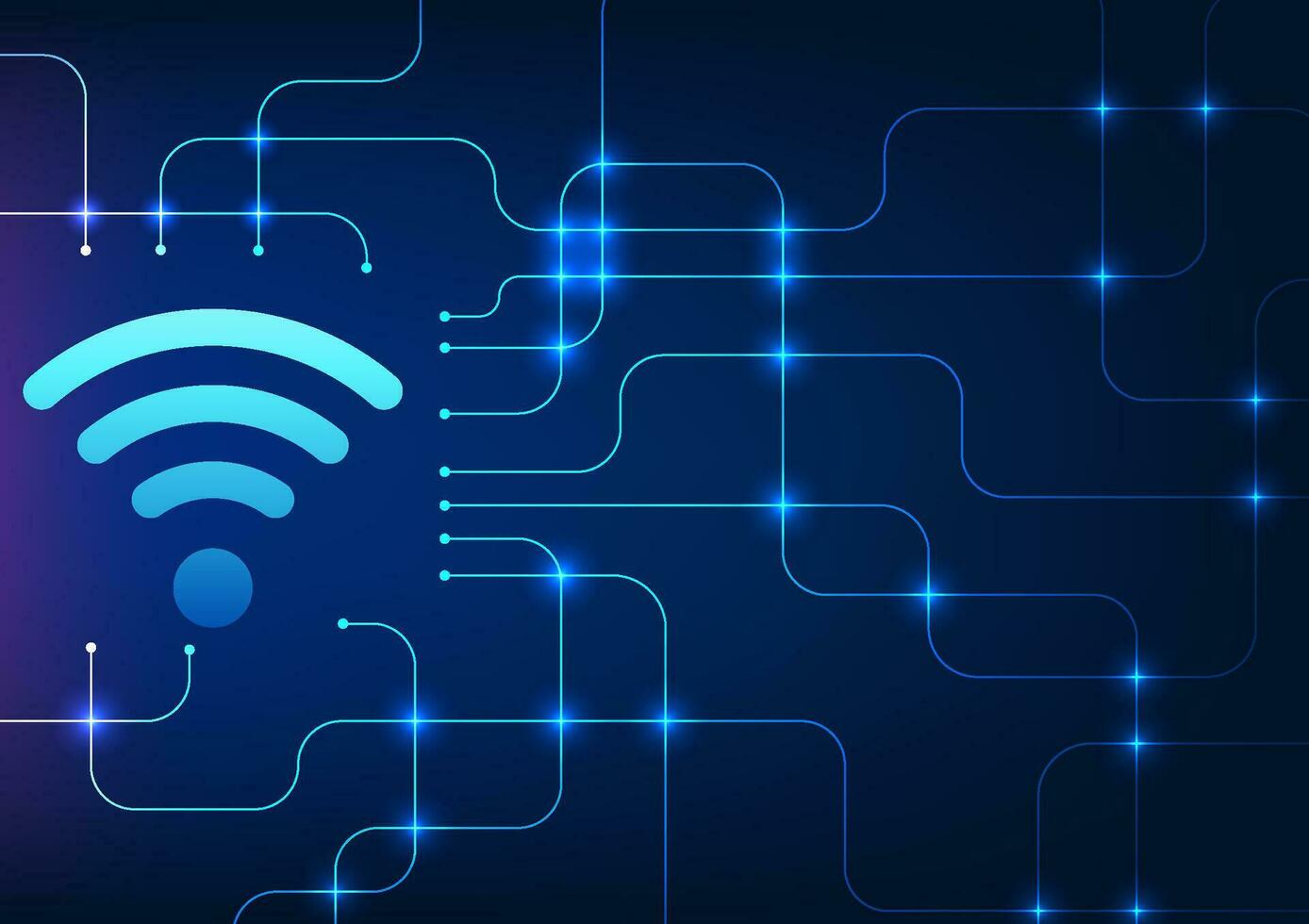 Wifi tecnología eso es un tecnología ese envía Internet señales a electrónico dispositivos a hacer un conexión. eso es un vector ilustración con un Wifi icono con el conexión circuito tablero. Vector Pro