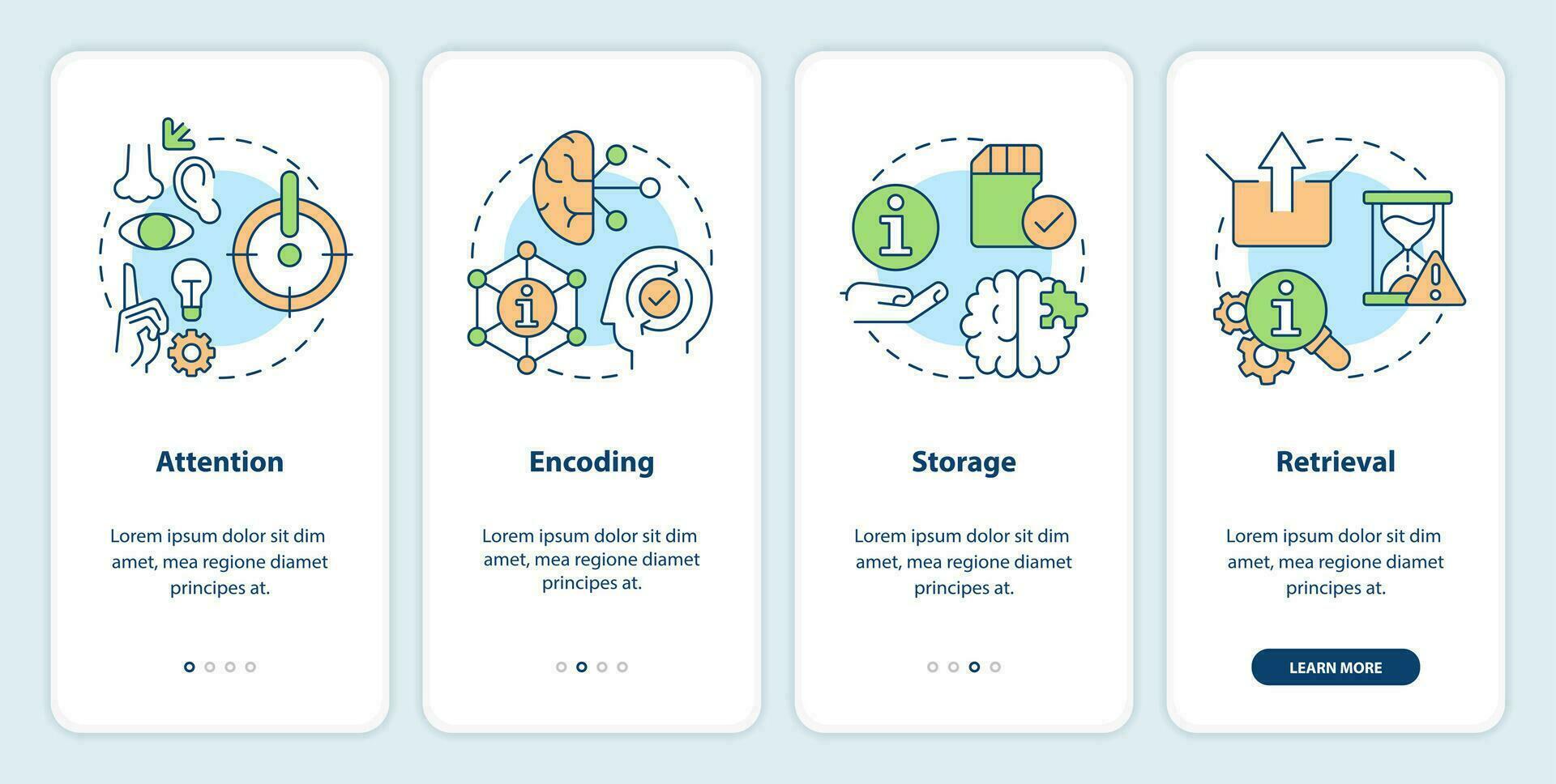 memorizando información inducción móvil aplicación pantalla. memoria proceso recorrido 4 4 pasos editable gráfico instrucciones con lineal conceptos. ui, ux, gui modelo Vector Pro