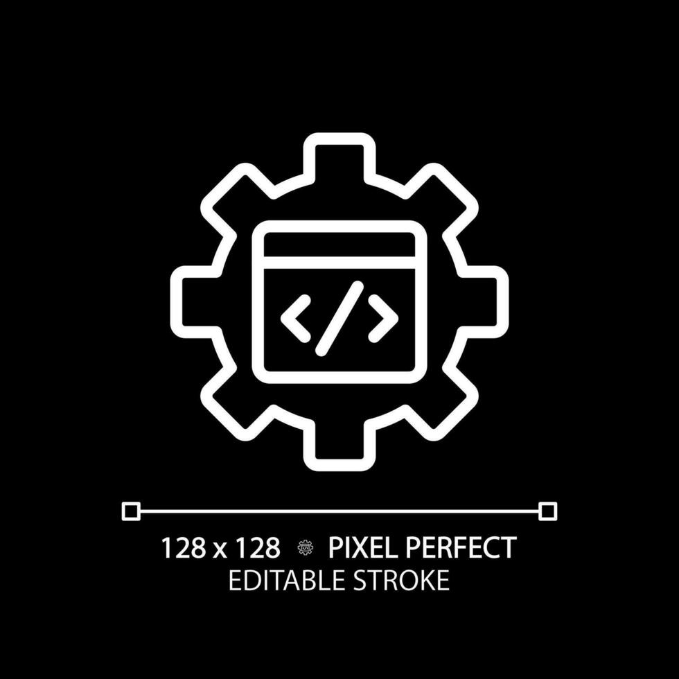 vástago en codificación en píxel Perfecto blanco lineal icono para oscuro tema. aplicación desarrollo estudiando proceso. programación para estudiantes. Delgado línea ilustración. aislado símbolo para noche modo. editable carrera Vector Pro