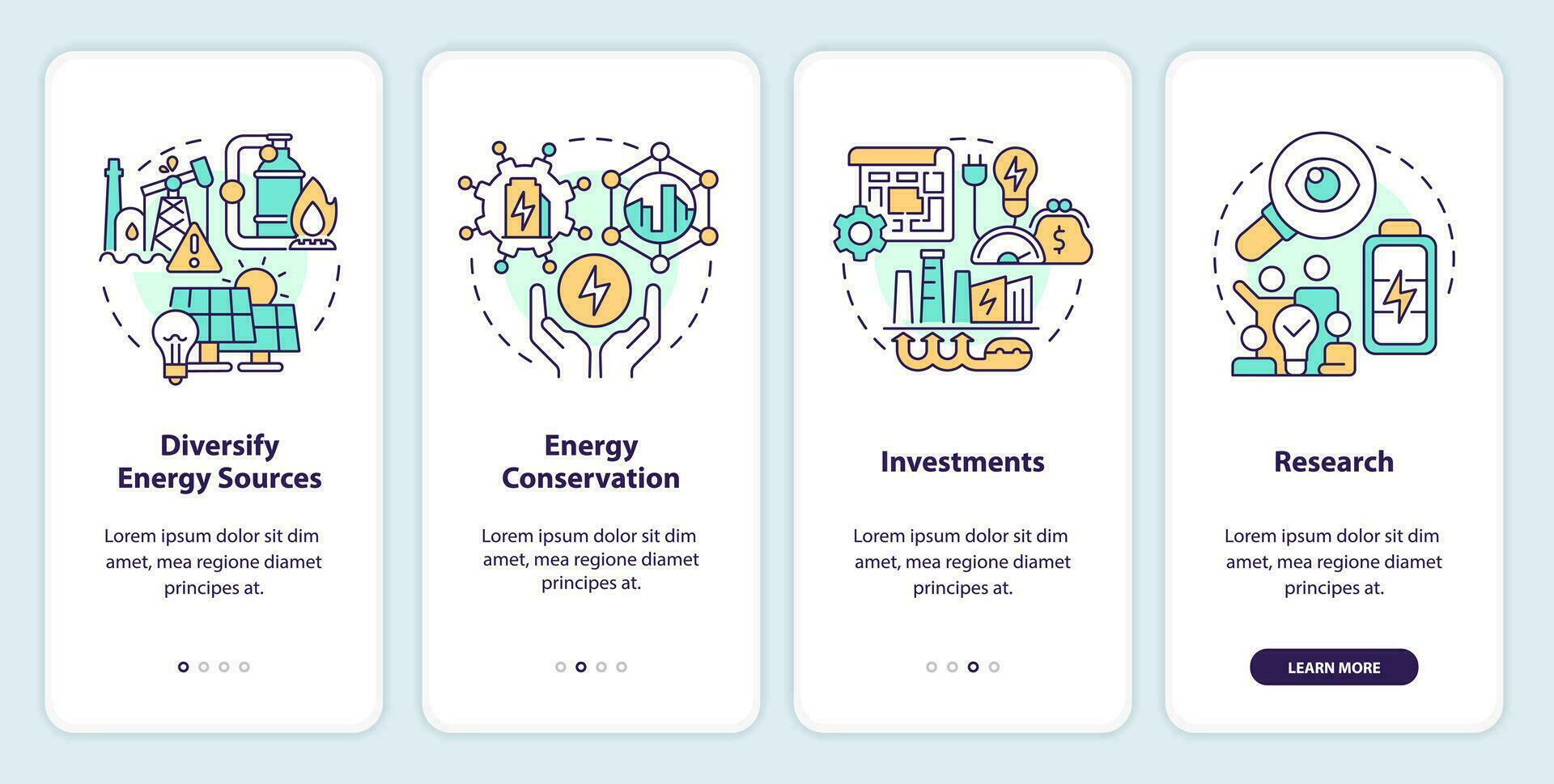 2d lineal íconos representando carbón frontera ajustamiento móvil aplicación pantalla colocar. 4 4 pasos gráfico instrucciones, ui, ux, gui modelo. Vector Pro