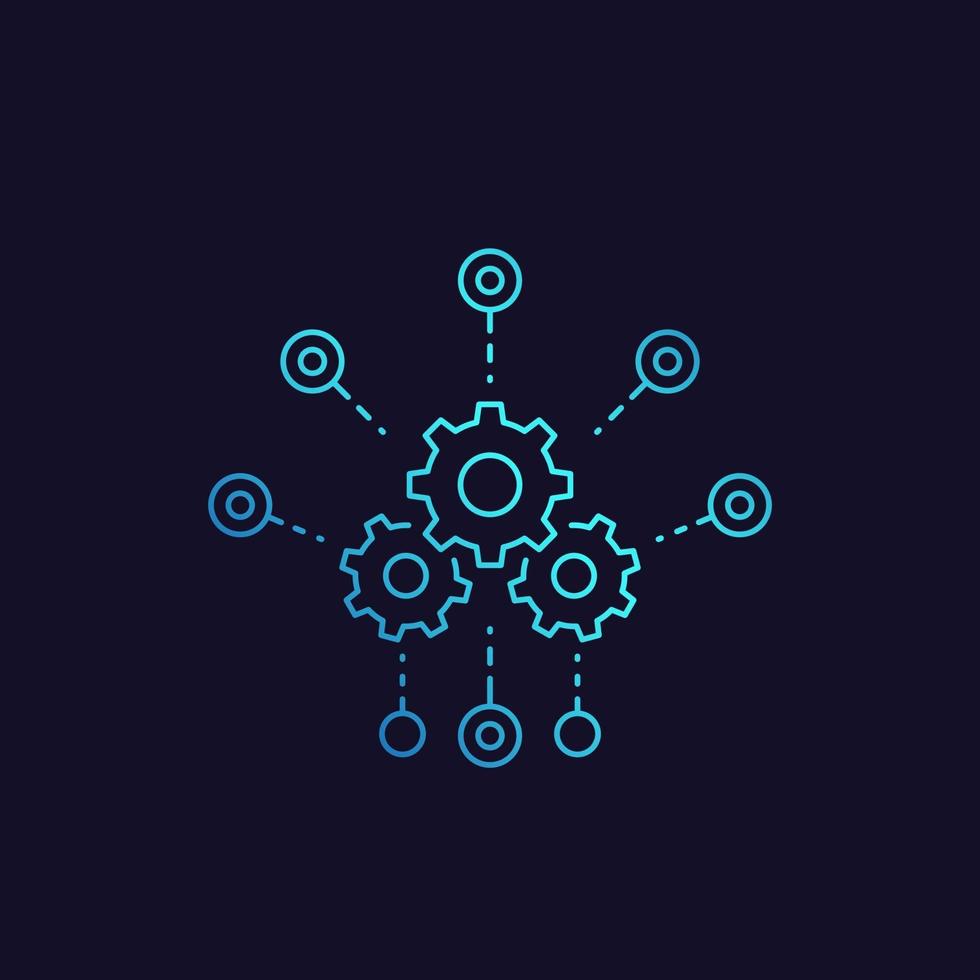 desarrollo, integración de software, icono de vector de automatización, estilo lineal Vector Pro