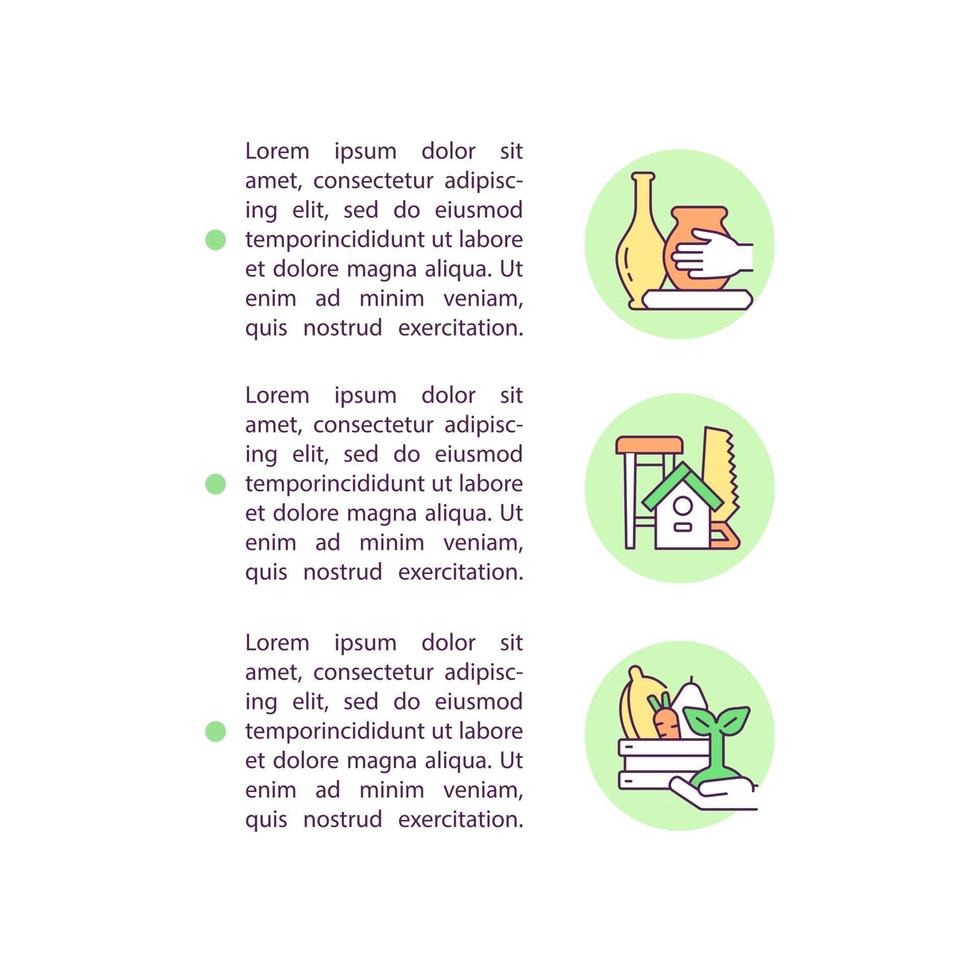 nichos de fabricantes de iconos de línea de concepto con texto. plantilla de vector de página ppt con espacio de copia. folleto, revista, elemento de diseño de boletín. comunidad agrícola ilustraciones lineales en blanco Vector Pro