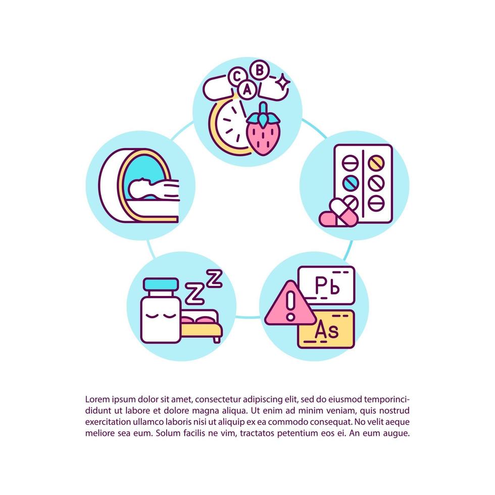 iconos de línea de concepto de medicina complementaria y alternativa con texto. plantilla de vector de página ppt con espacio de copia. folleto, revista, elemento de diseño de boletín. autismo lineal ilustraciones en blanco Vector Pro