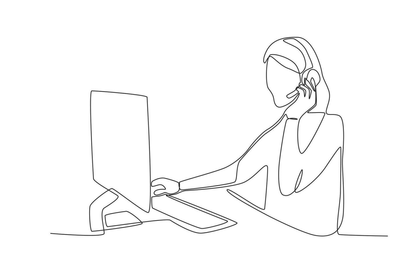 uno continuo línea dibujo grupo de hembra cliente Servicio es resolviendo cliente quejas con incorrecto datos Vector Pro