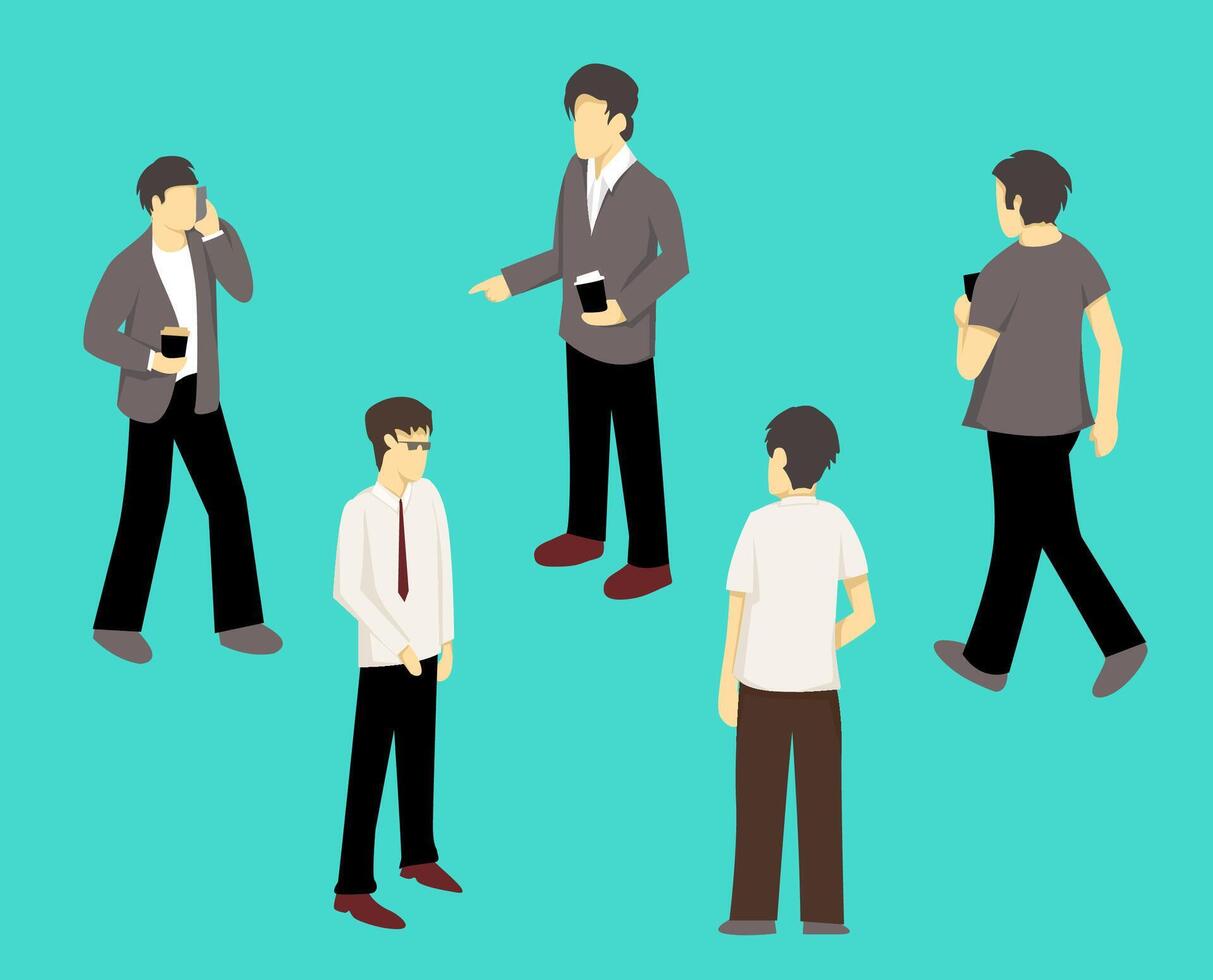 Conjunto isométrico de hombres., empresarios conjunto isométrico de hombres sobre un fondo claro., empresarios en diferentes poses, vista frontal, vista trasera. ilustración vectorial, ilustración 3d, renderizado 3d vector