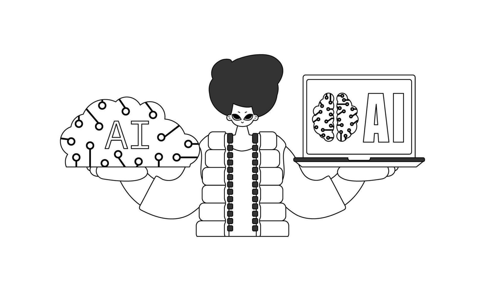 él sostiene un ai modificación en manos, vector en lineal formar Vector Pro