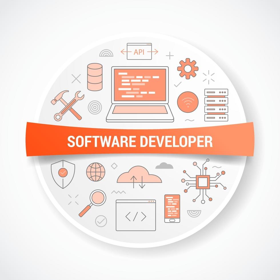Desarrollador de software con concepto de icono con forma redonda o circular vector