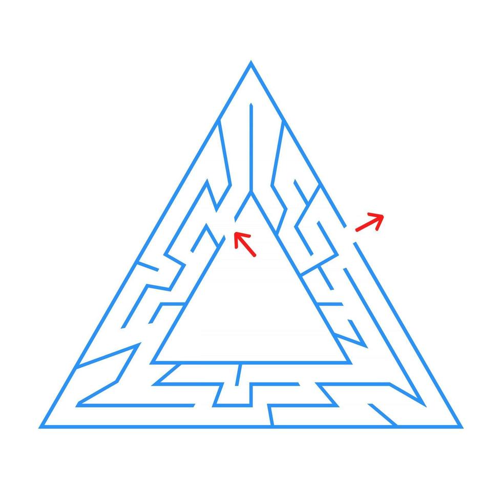 Laberinto triangular con entrada y salida. Ilustración de vector plano simple aislado sobre fondo blanco. con un lugar para tu imagen. Vector Pro