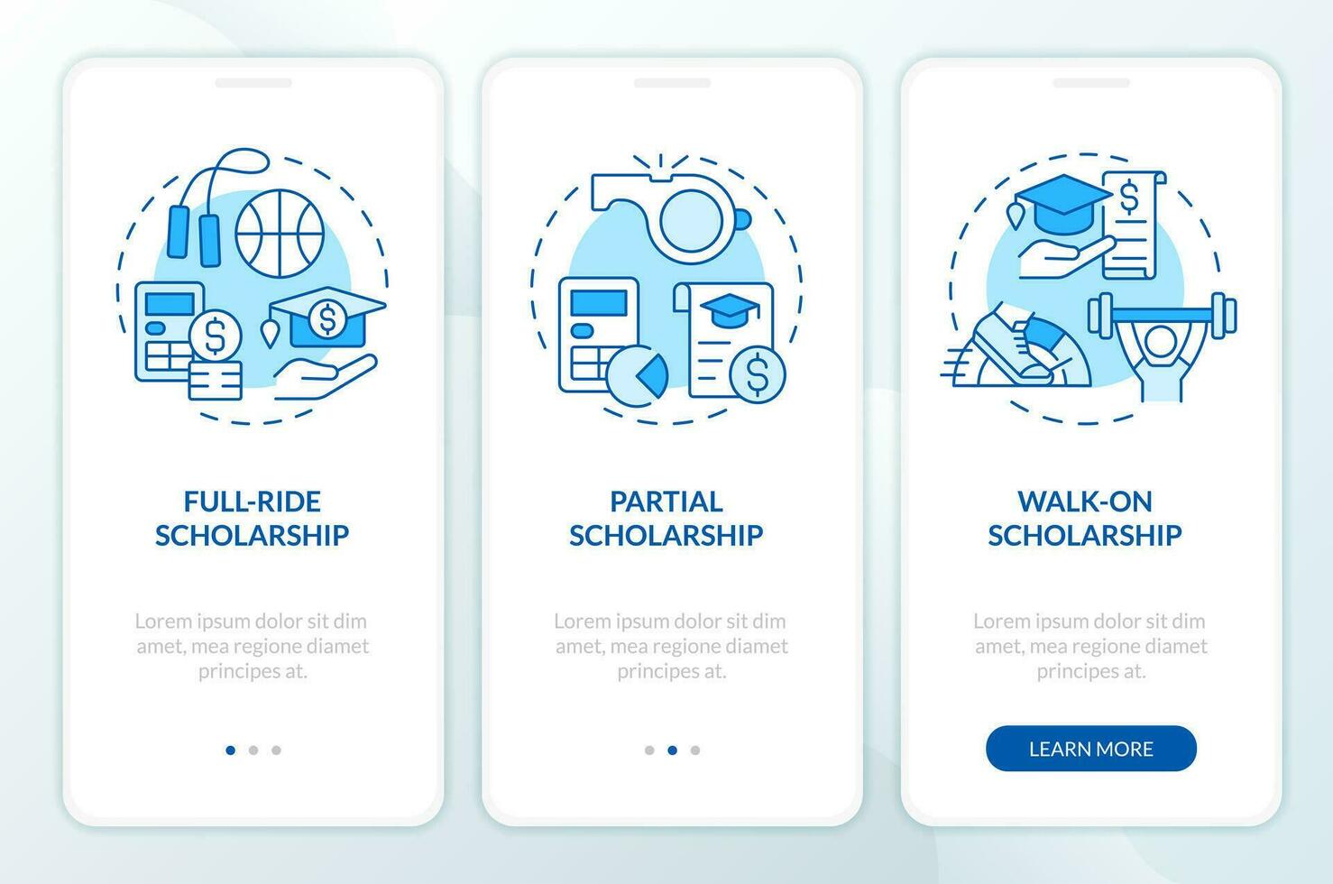 2d íconos representando atlético beca móvil aplicación pantalla colocar. recorrido 3 pasos azul gráfico instrucciones con Delgado lineal íconos concepto, ui, ux, gui modelo. Pro Vector y Pro SVG