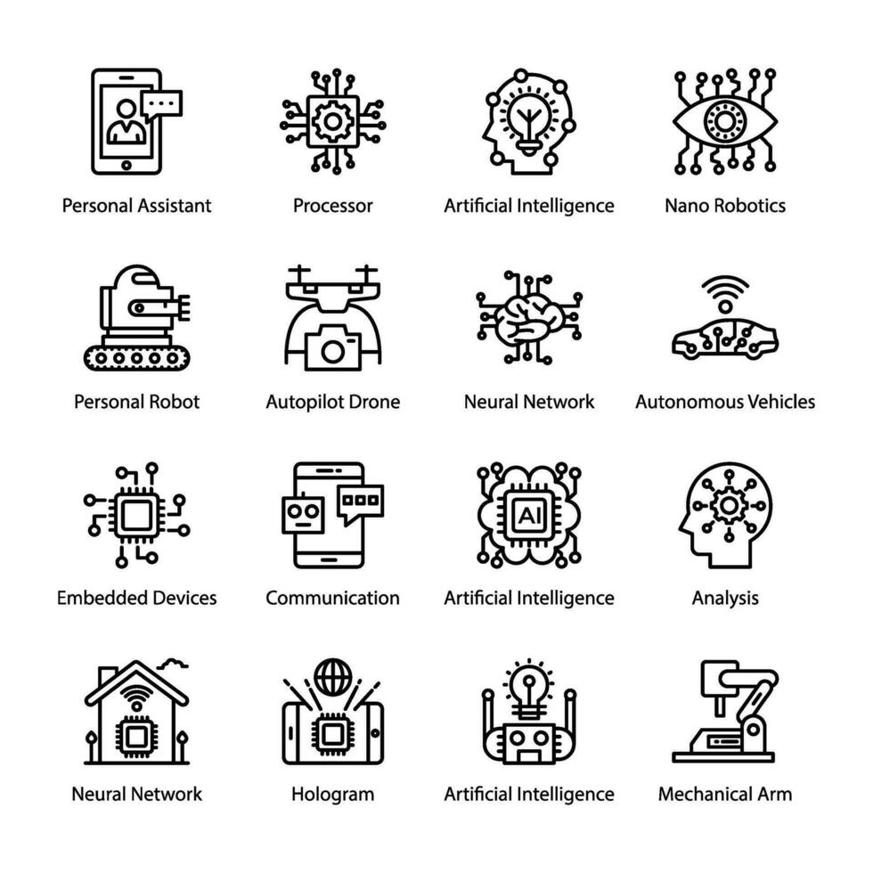 artificial inteligencia y vr línea vector íconos conjunto Vector Pro