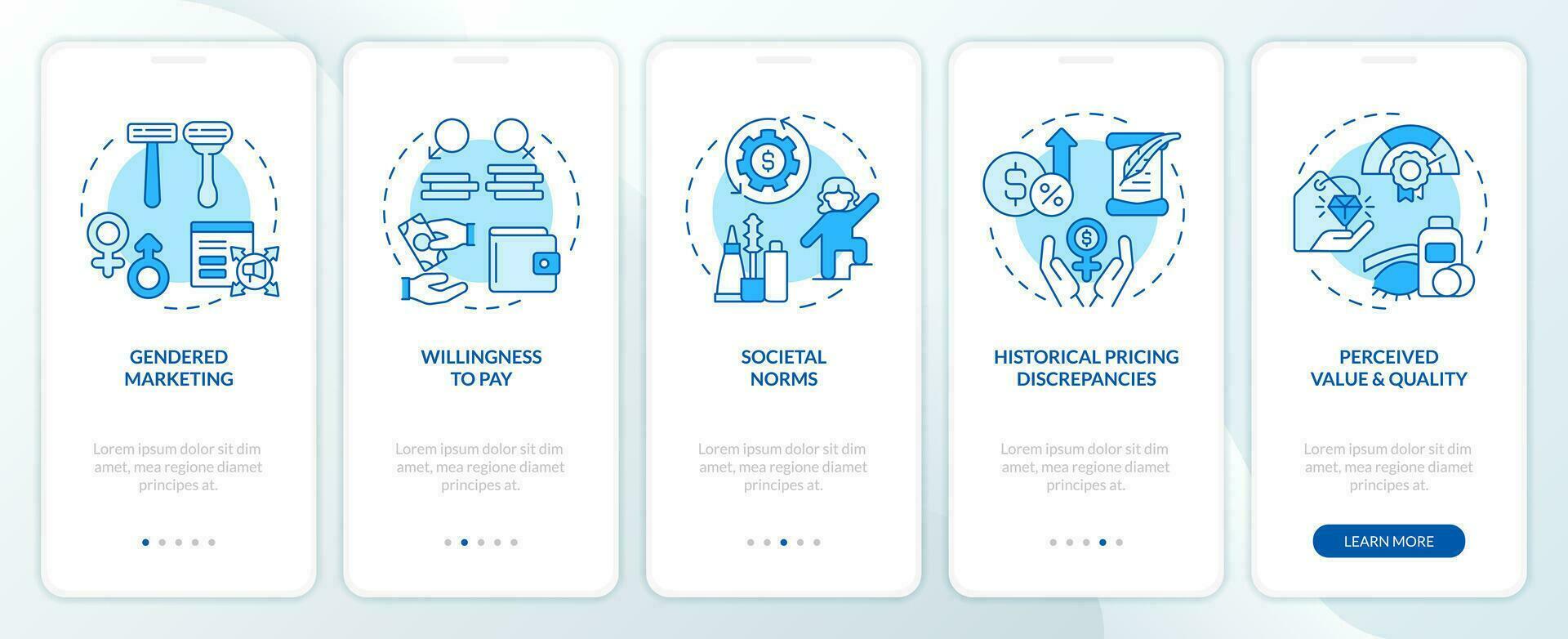 2d íconos representando rosado impuesto existencia móvil aplicación pantalla colocar. recorrido 5 5 pasos azul gráfico instrucciones con Delgado línea íconos concepto, ui, ux, gui modelo. Vector Pro