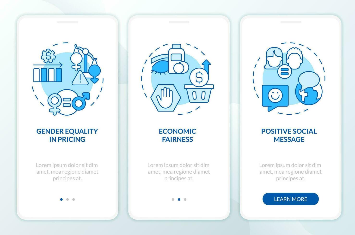 2d lineal íconos representando argumentos para abolición el rosado impuesto móvil aplicación pantalla colocar. recorrido 3 pasos azul gráfico instrucciones con concepto, ui, ux, gui modelo. Vector Pro