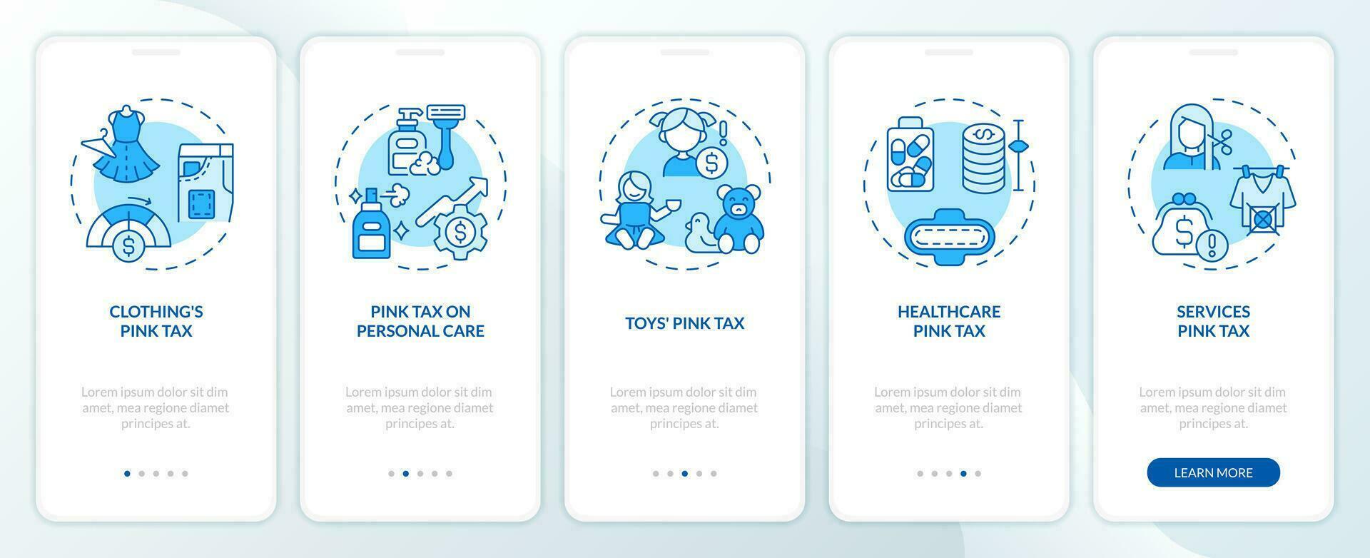2d íconos representando rosado impuesto móvil aplicación pantalla colocar. recorrido 5 5 pasos azul gráfico instrucciones con Delgado línea íconos concepto, ui, ux, gui modelo. Vector Pro