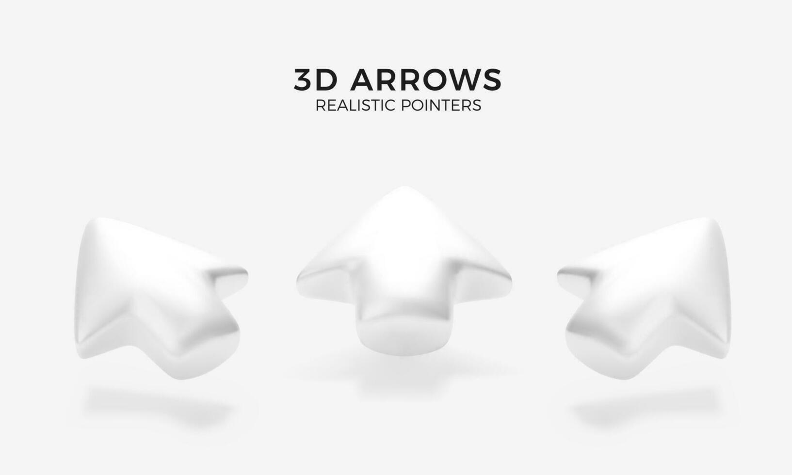 blanco flecha. 3d flecha conjunto diferente dirección. volumen computadora puntero o cursor. vector ilustración Vector Pro