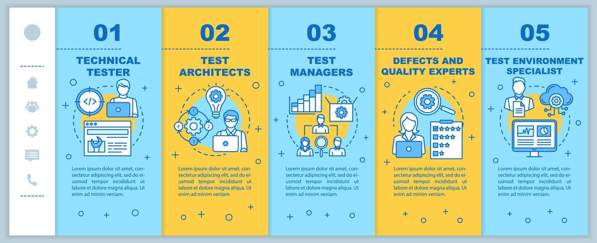 probadores de software incorporando plantillas vectoriales de páginas web móviles Vector Pro