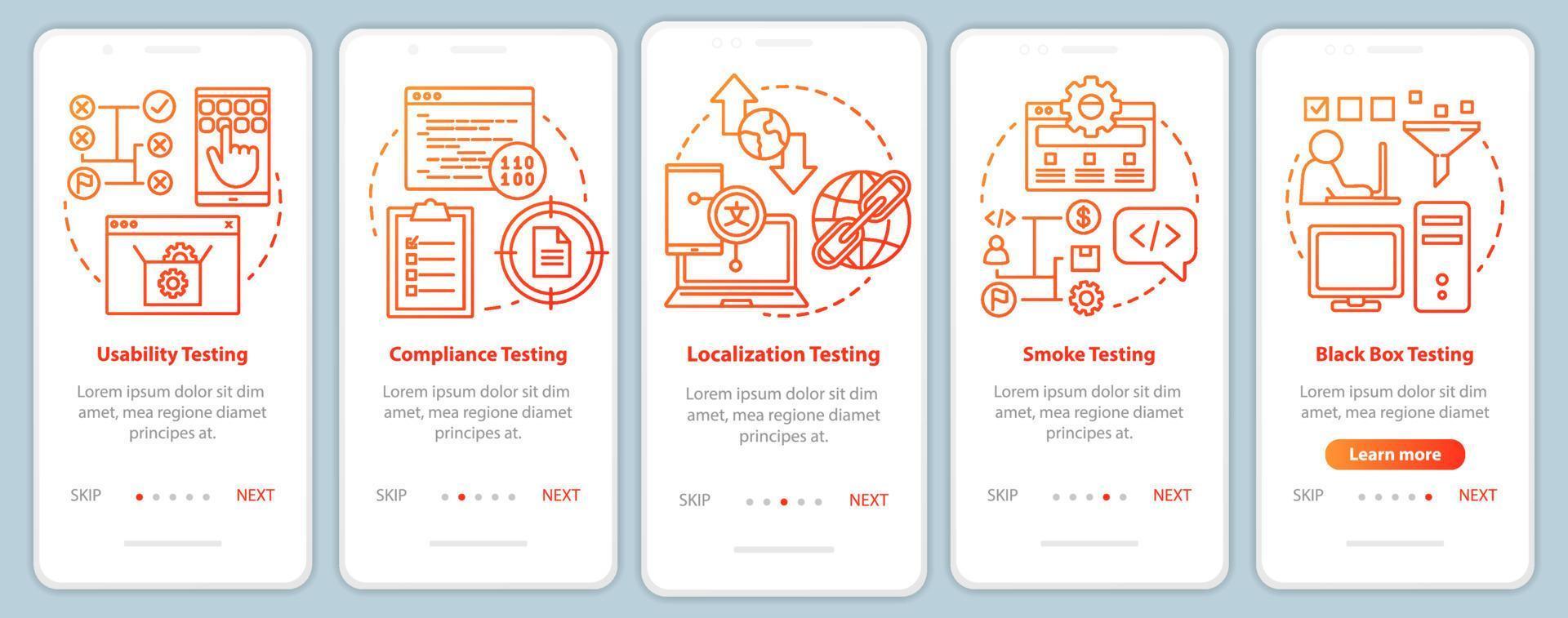 Prueba de software no funcional Plantilla de vector de pantalla de página de aplicación móvil de incorporación naranja Vector Pro