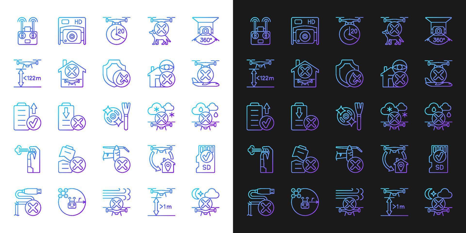 Iconos de etiquetas manuales de gradiente de uso de drones configurados para modo oscuro y claro Vector Pro
