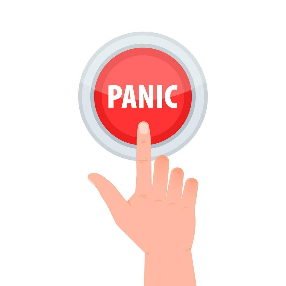 rojo botón con ayuda texto pánico. mano prensado pánico botón Vector Pro