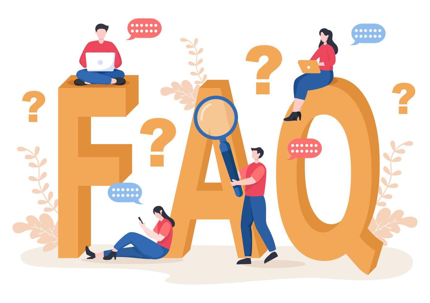 faq o preguntas frecuentes para el sitio web, servicio de asistencia de blogger, asistencia al cliente, información útil, guías. ilustración vectorial de fondo Vector Pro