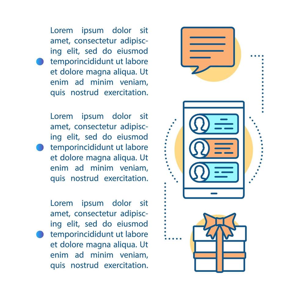 plantilla de vector de página de artículo de recompensas de marketing de referencia. programa de fidelidad. folleto, revista, elemento de diseño de folleto con iconos lineales y cuadros de texto. diseño de impresión. ilustraciones de concepto con texto Vector Pro